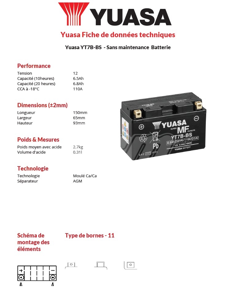 Dérivée de la moto, cette batterie à acide est extrêmement résistante aux vibrations (6.5 A). Vendu avec acide séparé.