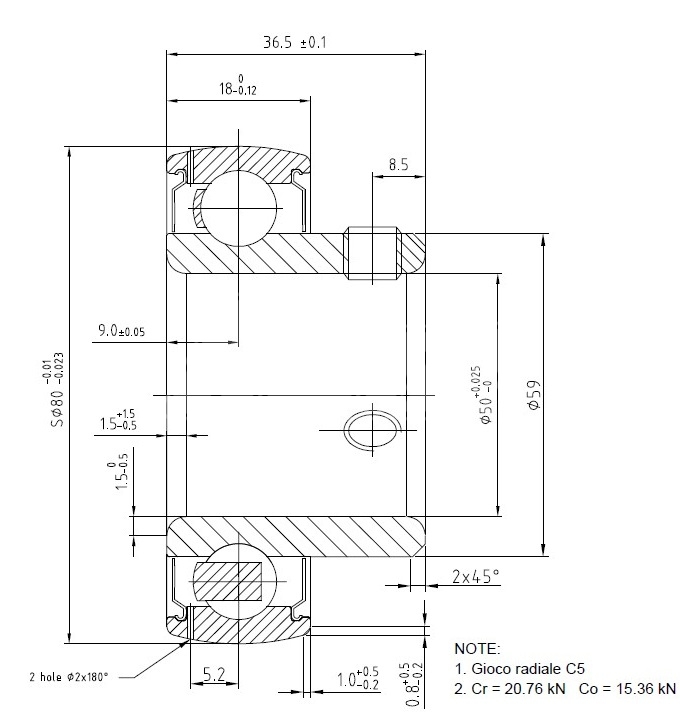 ROULEMENT ø50x80mm 3 vis SB208/210ZZC5 ORIGINE CRG/KR